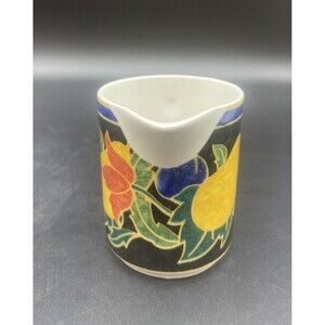 Add some vintage charm to your kitchen with this beautiful porcelain creamer and sugar set from Victoria Beale. The set includes a creamer, sugar bowl with lid, both adorned with a delightful fruit pattern in bright, multicolor hues. The glossy finish on the set gives it a classic, timeless feel, perfect for any collector or vintage enthusiast.