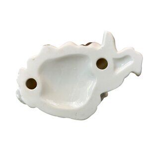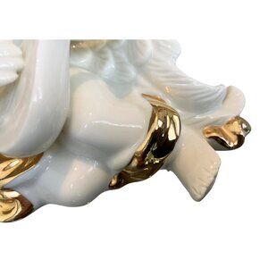 VTG Porcelain White Cherub Angel 24K Gold Sash Playing Harp Sculpture/ Figurine