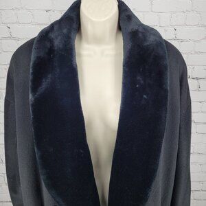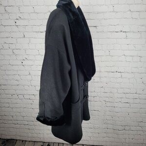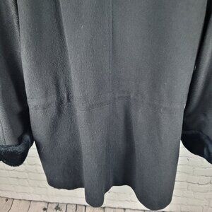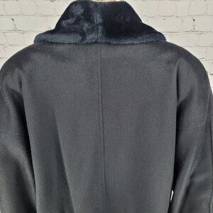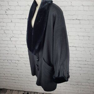 VTG Portrait Black Wool Blend Faux Fur Trim Buttoned Lined Over Coat Size 14