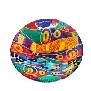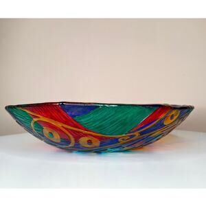 VTG Postmodern Gustav Klimt Inspired Hand Painted Art Glass Abstract Bowl