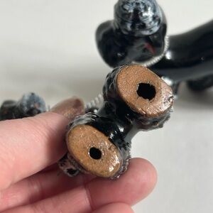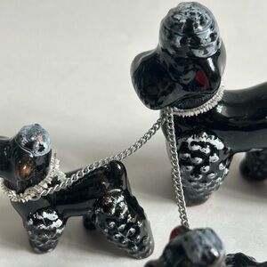 VTG Pottery Black Poodle Mama with Two Puppies on Chain Kitschy Figurines Japan