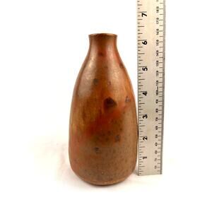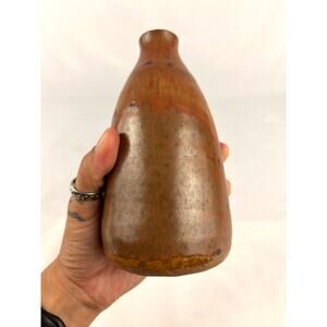 VTG Pottery Small Vase Handmade 6.25" Mini Brown Artist Signed 1980s