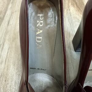 VTG Prada Block Heel Burgundy Red Loafers 8.5/38.5 Heels Pumps Twee Retro Goth