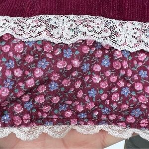 VTG Prairie Skirt Gunne Sax Style Corduroy Calico Ditzy Floral Lace 6X USA 70s