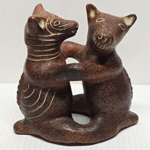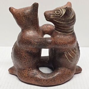 VTG Pre Columbian Style Dancing Dogs Xoloitzcuintli Colima Signed Figurine 6"