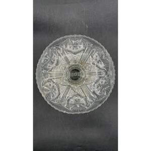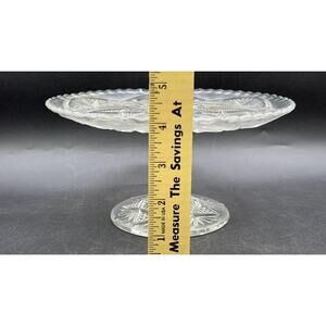 VTG Pressed Glass Pedestal Cake Stand 8.25" Scalloped Edge Starburst Design