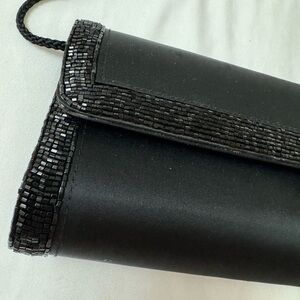 VTG Preston & York Elegant Beaded Satin Black Evening Clutch Shoulder Bag 90’s