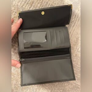 VTG Princess Gardner Cowhide Black Leather Trifold Kiss Lock Wallet Gold Metal
