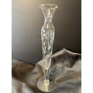 VTG Princess House Heritage Hand Blown Crystal Bud Vase 10” #409 Ruffled Edges