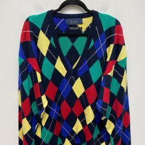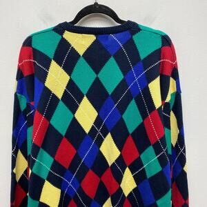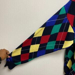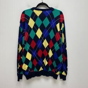 VTG Pringle Men Multicolor Argyle V-Neck Cotton Long Sleeve Pullover Sweater XXL
