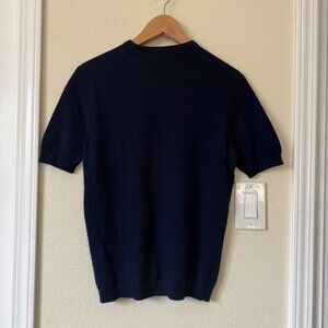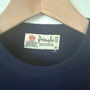VTG Pringle Of Scotland Navy Blue 100% Pure Cashmere Short Sleeve Sweater Sz 40