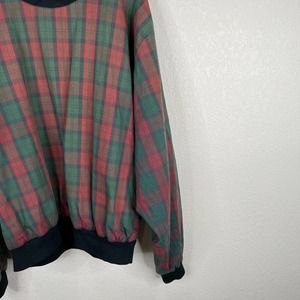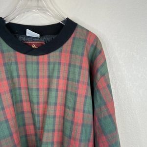 VTG ProQuip Mens Golf Jacket Sz Large Red/Green Plaid Pullover Windbreaker Crew