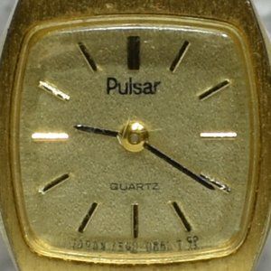 VTG Pulsar Gold Tone Quartz Watch w/ Safety Chain