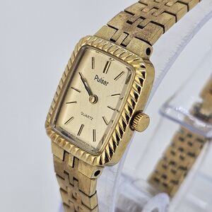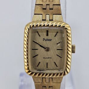 VTG Pulsar Watch Women 19MM Gold Tone Dial Gold Bracelet 6.5" Wrist New Battery