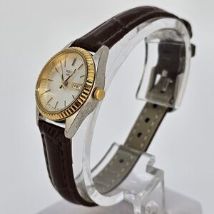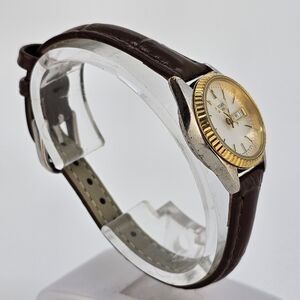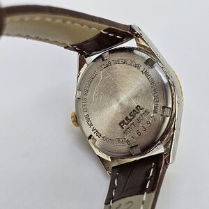 VTG Pulsar Watch Women 24MM Gold Dial Brown Leather Bands Up to 6.5" New Battery