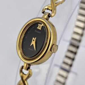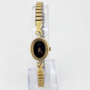 VTG Pulsar Women Watch 16MM Black Dial Gold Expandable Band 6" New Battery