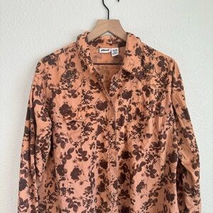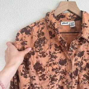 VTG Punch Women's 2X Floral Snap Button Down Shirt Beaded Boho Casual Orange