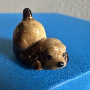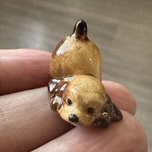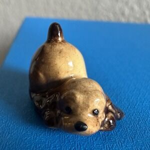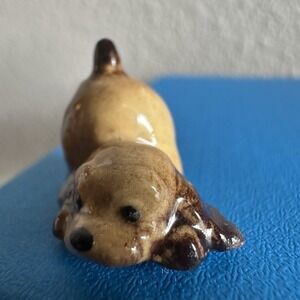 VTG Puppy Cocker Spaniel Dog Figurine 7/8" Miniature Cream Brown Glaze Porcelain