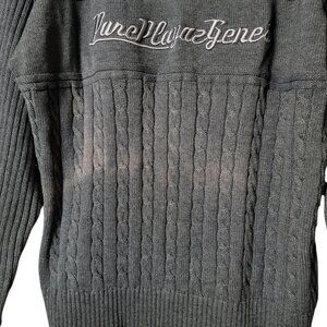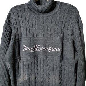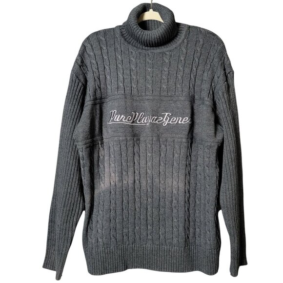 VTG Pure Playaz Mens Gray Y2K Hip Hop Spellout Cable Knit Turtleneck Sweater L