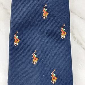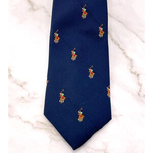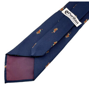 VTG Puritan Cape Cod Polo Player Necktie Navy Horses Preppy Heritage Embroidered