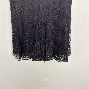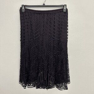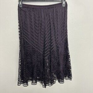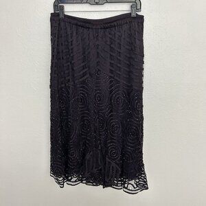 VTG Purple Handmade Silk Crochet Battenburg Sheer Lace Overlay Midi Skirt Sz 1X