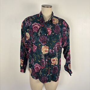 VTG Putumayo New York Womens Small Bold Floral Long Sleeve Button Up Collar Top