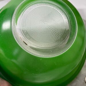 VTG Pyrex 322 1L green mixing bowl clear bottom. This is part of a nesting set. The green paint has many scratches. Please see all pictures. No chips cracks or repairs. Please ask away with your questions:).