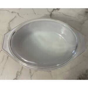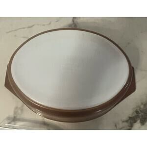 ─୨ৎ─ VTG Pyrex Early American Oval Casserole 2.5 QT w Lid Brown & Gold Corning ❌