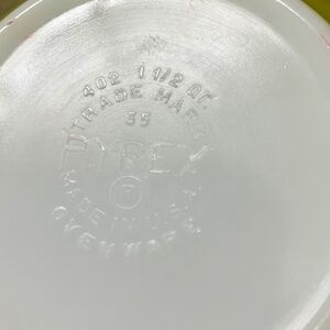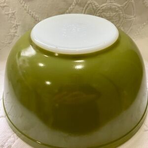 Set of three verde green mixing bowls in graduated colors of yellow green, olive green and darker verde green as shown. These mixing bowls are in great used condition there are no chips or cracks. There are very small scratches outside bowl 403 (middle size) as shown in pictures and is seen when held up to light.