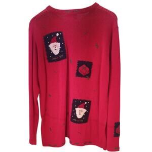 VTG Quacker Factory Christmas Cardigan Red Santa Embroidered Sweater Large