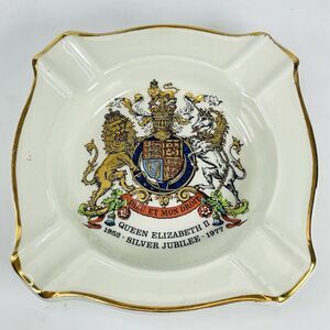 Vintage, Queen Elizabeth II, Silver Jubilee, Ashtray, Weatherby Hanley, Falcon Ware, Royal Memorabilia, British Royal Family, 1977, Commemorative, Ceramic, Porcelain, Collectible, Trinket Dish, Royal History, UK, Never Used,