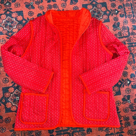 Vintage quilted coat, quilt jacket. Perfect condition. Vibrant red, great for spring. 2 pockets. Size small