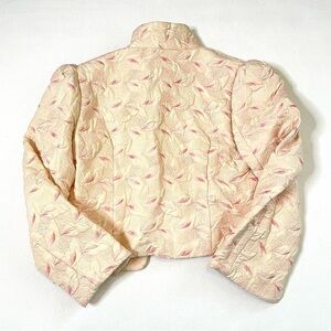 Vintage quilted leaves design mandarin collar open crop 3/4 sleeve jacket small