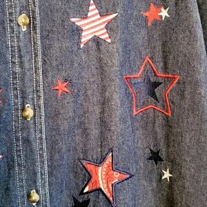 Vintage Quizz Woman & Co Patriotic Stars and Strips Button Down Denim Shirt