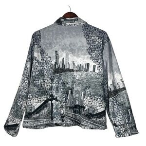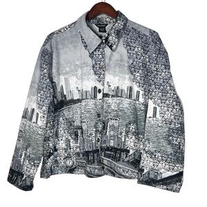 VTG RAAKHEE Sequin Black White City Skyline Button Up Top Women's Size 1X