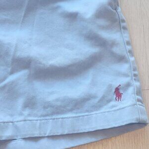 Ralph Lauren Sport Light Blue high rise shorts front logo. Versatile shorts made from comfortable 100% cotton and two side pockets. Iconic red player logo embroidered.