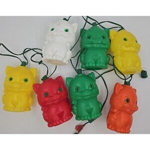 VTG RARE 7 Blow Mold Plastic Cat Kitty Patio RV Camping Party Lites Light String