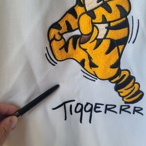 VTG RARE 90's Disney Mickey White Sweater Embroidered Jumping Tiger XXL Unisex
