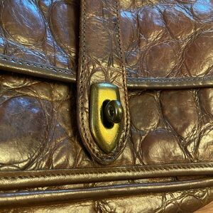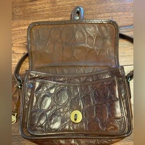 VTG RARE Dooney & Bourke Crossbody Bag Brown Leather Alligator Croc Embossed USA