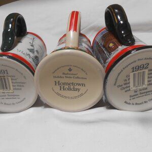 This product is a lot of three vintage Budweiser Holiday beer steins/mugs collection featuring the iconic Clydesdale's horses and winter scene design. Made in Brazil, these breweriana collectibles are a great addition to any Budweiser enthusiast's collection. With unmodified authenticity, these cups showcase the brand's heritage and charm, making them a unique and sought-after item for people who appreciate classic beer memorabilia. 1991-1992 collectors series. All 3 mugs are in excellent clean condition and package lot weighs over 5 pounds thus the shipping charge. All my items are shipped the same day that payment is received from a clean, smoke free, home!