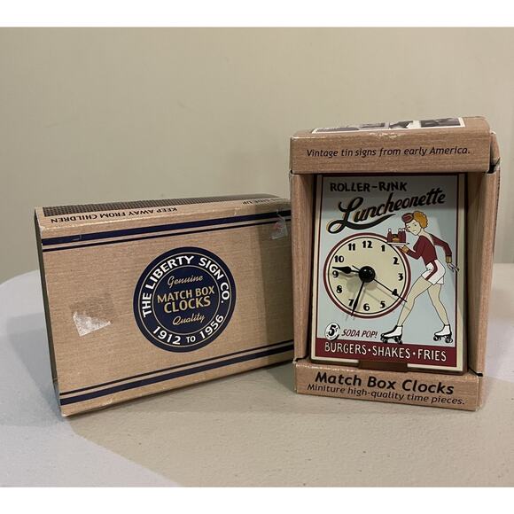 VTG RARE Liberty Sign Match Box Clocks - #40011 Roller Rink, In Box
