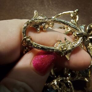 Rousseau Choker Necklace Iridescent Rhinestones on Gold Color Links 15"