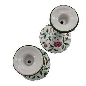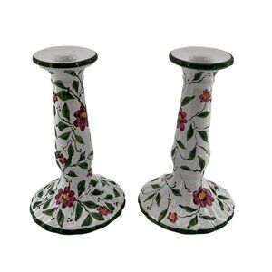 VTG RC & CLPorcelain Candlesticks Portugal Handpainted Flowers Vines