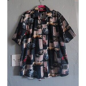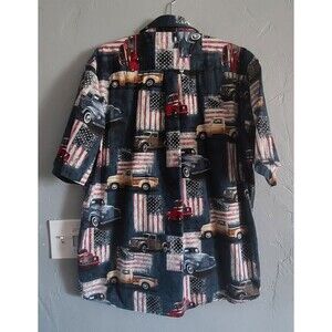 This vintage Red Head shirt is a must-have for any fashion-savvy man. With a collared neckline and button-down closure, it's perfect for both casual and workwear occasions. Made from comfortable cotton fabric, this shirt features a multicolor car and flag pattern that adds a touch of bohemian style to any outfit.