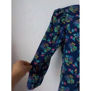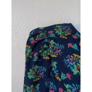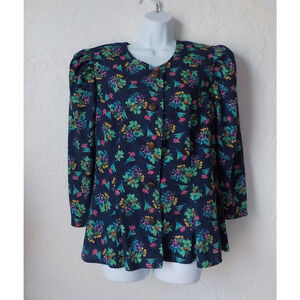 VTG RGY Blue Floral Blouse Button Up Size 14 Peplum Hem Puff Sleeve Prairie 90s