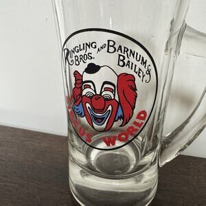 VTG RINGLING BROS. and BARNUM & BAILEY Circus World Glass Mug Stein Clown 1970's