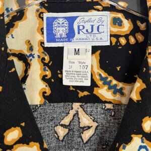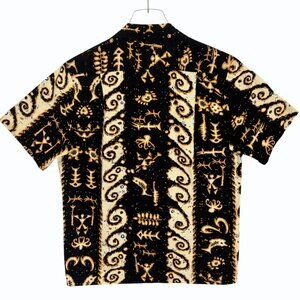 VTG RJC Hawaiian Shirt Mens M Tribal Print Black Cream Short Sleeve Aloha
