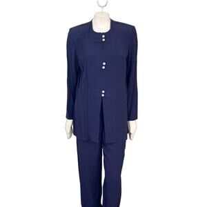 VTG R&M RICHARDS 2 Piece Conservative Pantsuit Set in Navy Blue SZ 8