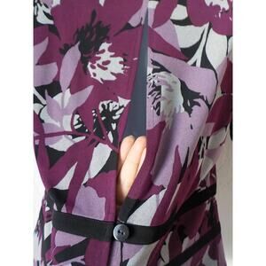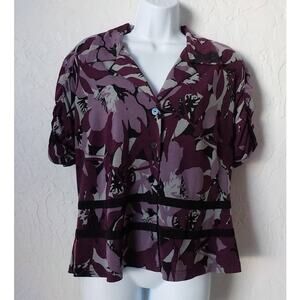 VTG R&M Richards Purple Floral Blouse Size 14 Blazer Button Up Short Sleeve Keyh