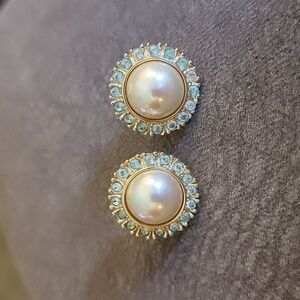 VTG ROMAN Baby Blue Rhinestone Halo Pearlesque Bridal Post Earrings
